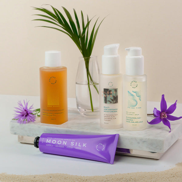 Mit Ausnahme von Moon Silk und New Dawn können die Produkte von Painted Palms während der Schwangerschaft oder des Stillens verwendet werden. Da Moon Silk und New Dawn Retinoide und Salicylsäure enthalten, sollten sie nicht während der Schwangerschaft oder des Stillens verwendet werden.
